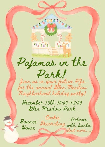 ✨The Glen Meadow Neighborhood Association invites you to follow the sounds of holiday cheer to the Glen Meadow Park and enjoy a morning of cookie decorating, a bounce house, pictures with Santa and more.